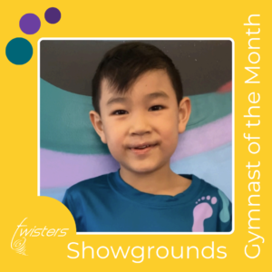I have nominated Mimi as Gymnast of The Month because she brings such a positive energy into the gym every time she comes in! Mimi absolutely loves gymnastics, and you can really see that every time she’s in class. Mimi is super keen to try new things and will take on feedback from any of the coaches and apply that to her skills. Mimi shows our core values “Be curious and brave” by trying new things each week and also shows our other value “fun and energy is contagious” by coming into the gym with a huge smile on her face, ready to learn and by showing kindness to all her classmates. Mimi is an absolute pleasure to coach – I can’t wait to continue watching her progress in her gymnastics. Go Mimi!!!!