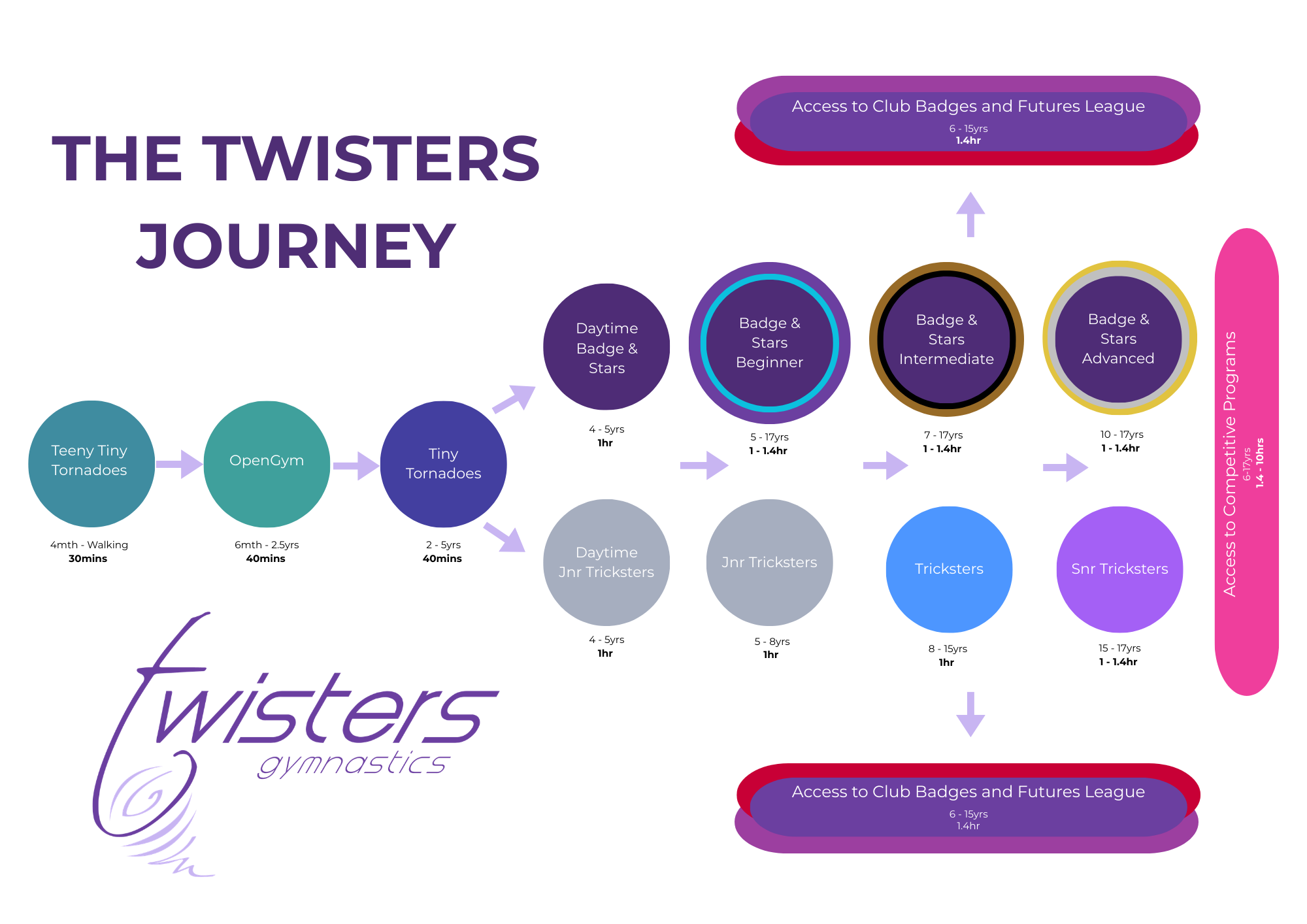 Our Jnr Tricksters program is broken into age groups, and then further into skill levels; Intro, Flow and Tempo.